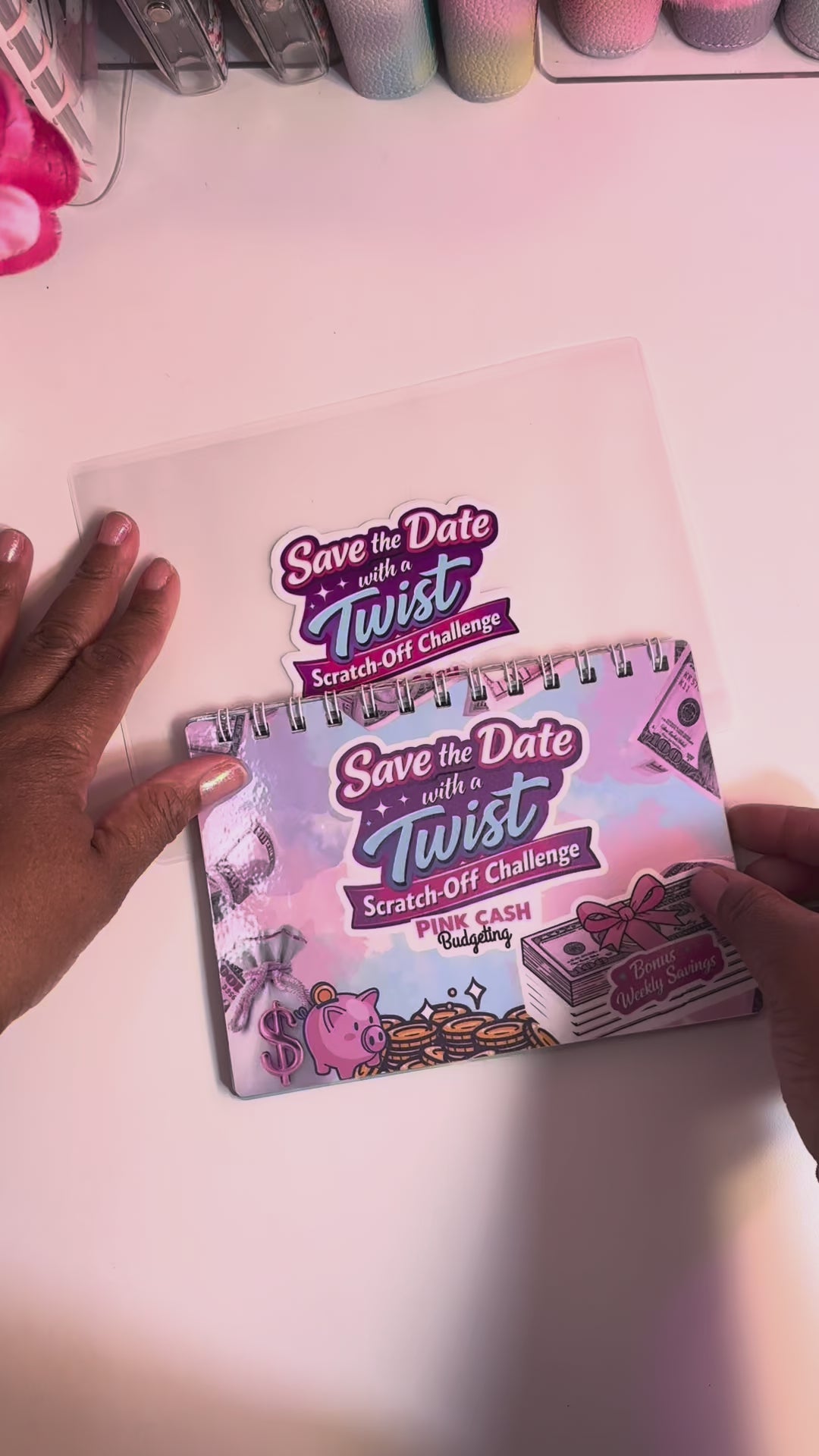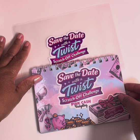 The Save by the Date with a Twist Savings Challenge is a 12-month scratch-off savings calendar designed to help you save over $6,000 in one year—without the pressure of traditional budgeting.