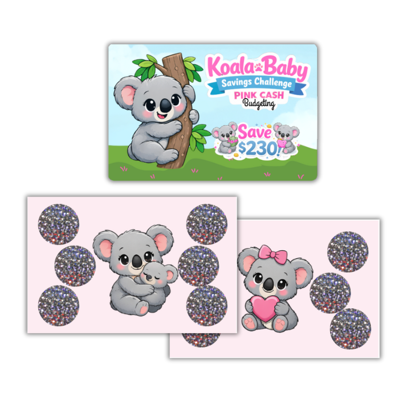Make saving fun, simple, and adorably motivating with the Koala Baby Savings Challenge by Pink Cash Budgeting. This scratch-off savings game is perfect for anyone who wants to build a savings habit without stress — just pull a card, scratch, and save!